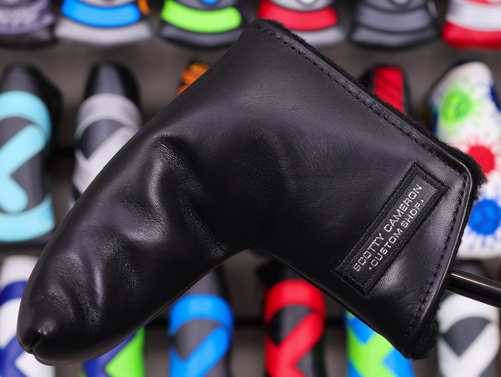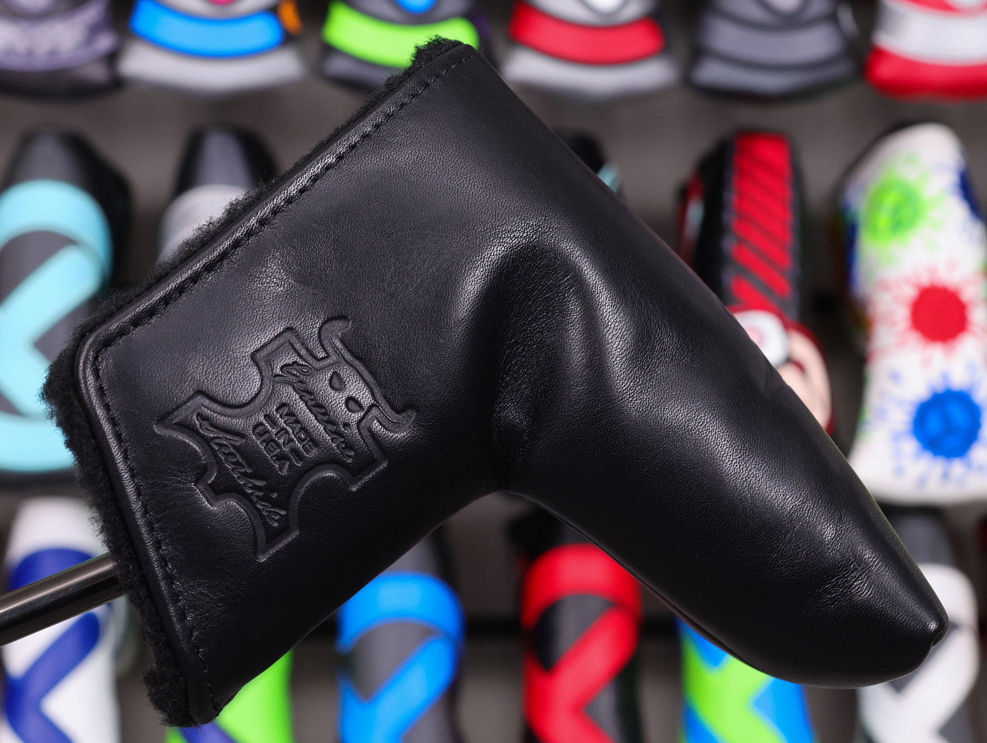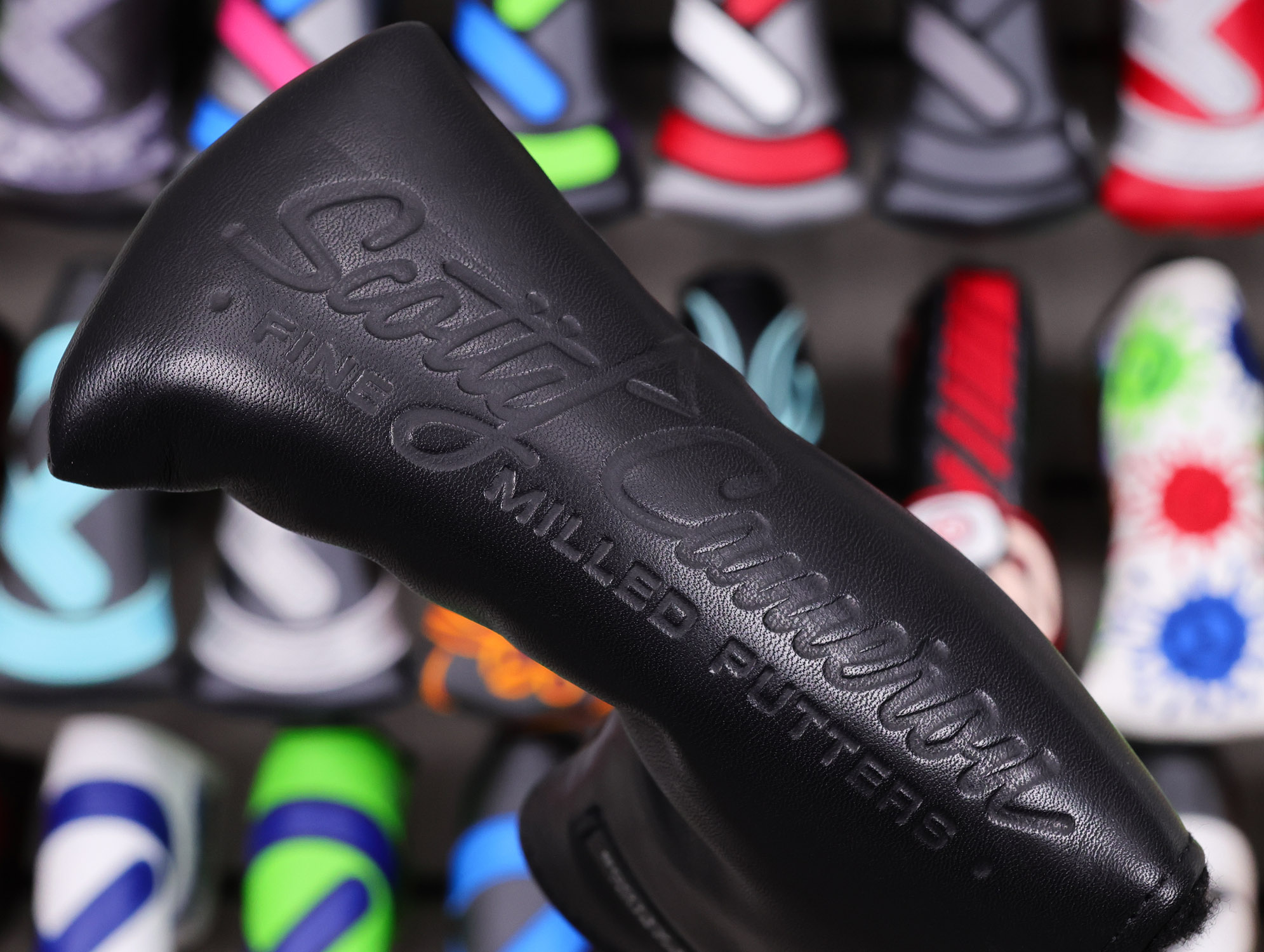 Headcover: Black Genuine Leather “Fine Milled Putters” Embossed Custom Shop Blade