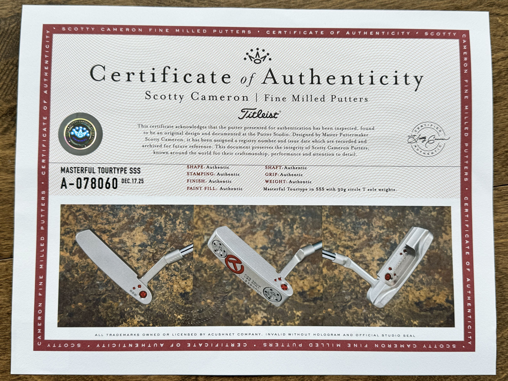 Model: Scotty Cameron Tour Only “Naked” SSS Masterful TourType Circle T 350G