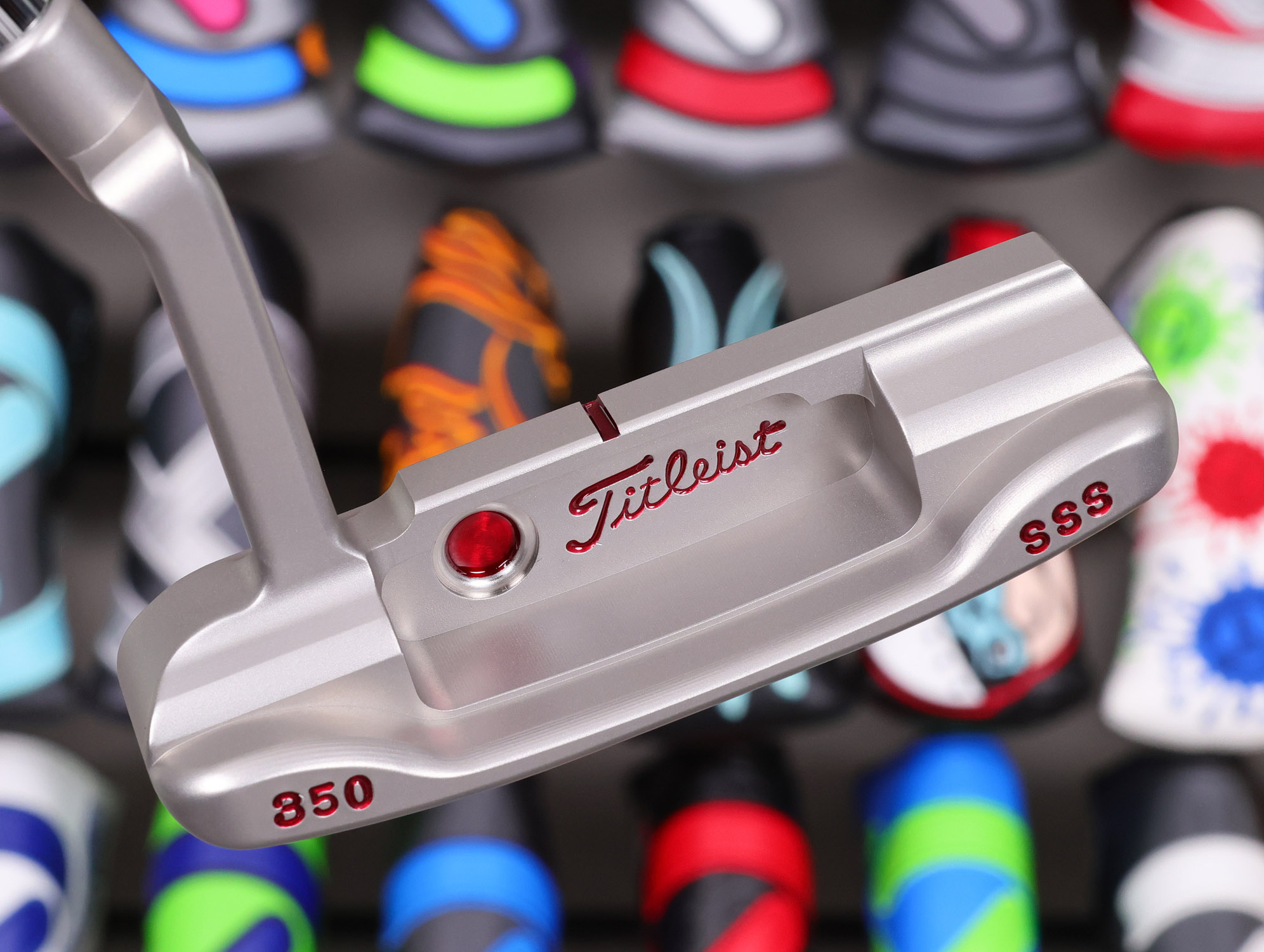 Notes: This Masterful 009.M was recently restored back to flawless condition at the Scotty Cameron Custom Shop! Highlighted by “Double-Milled” Cherry Bombs on the front and back and a Script “Titleist” stamp on the back wall. Finished with a Top Line for quick accurate alignment, and a 350G headweight for a Tour preferred sound and feel! Included are the matching Circle T grip, Circle T headcover and Certificate of Authenticity. Actual item pictured.
