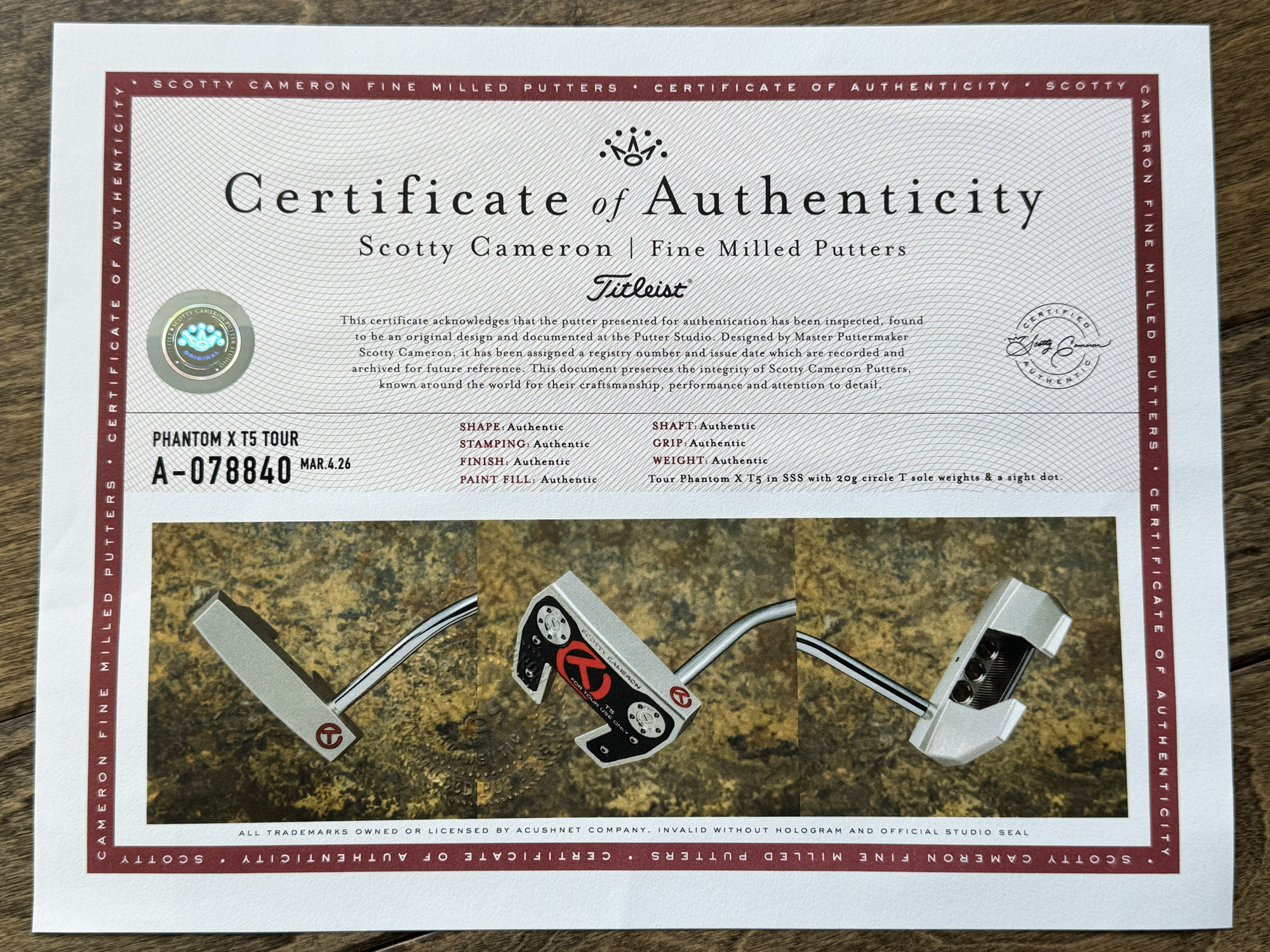 Model: Scotty Cameron Tour Only SSS Phantom X T5 Circle T 360G w/ Sight Dot