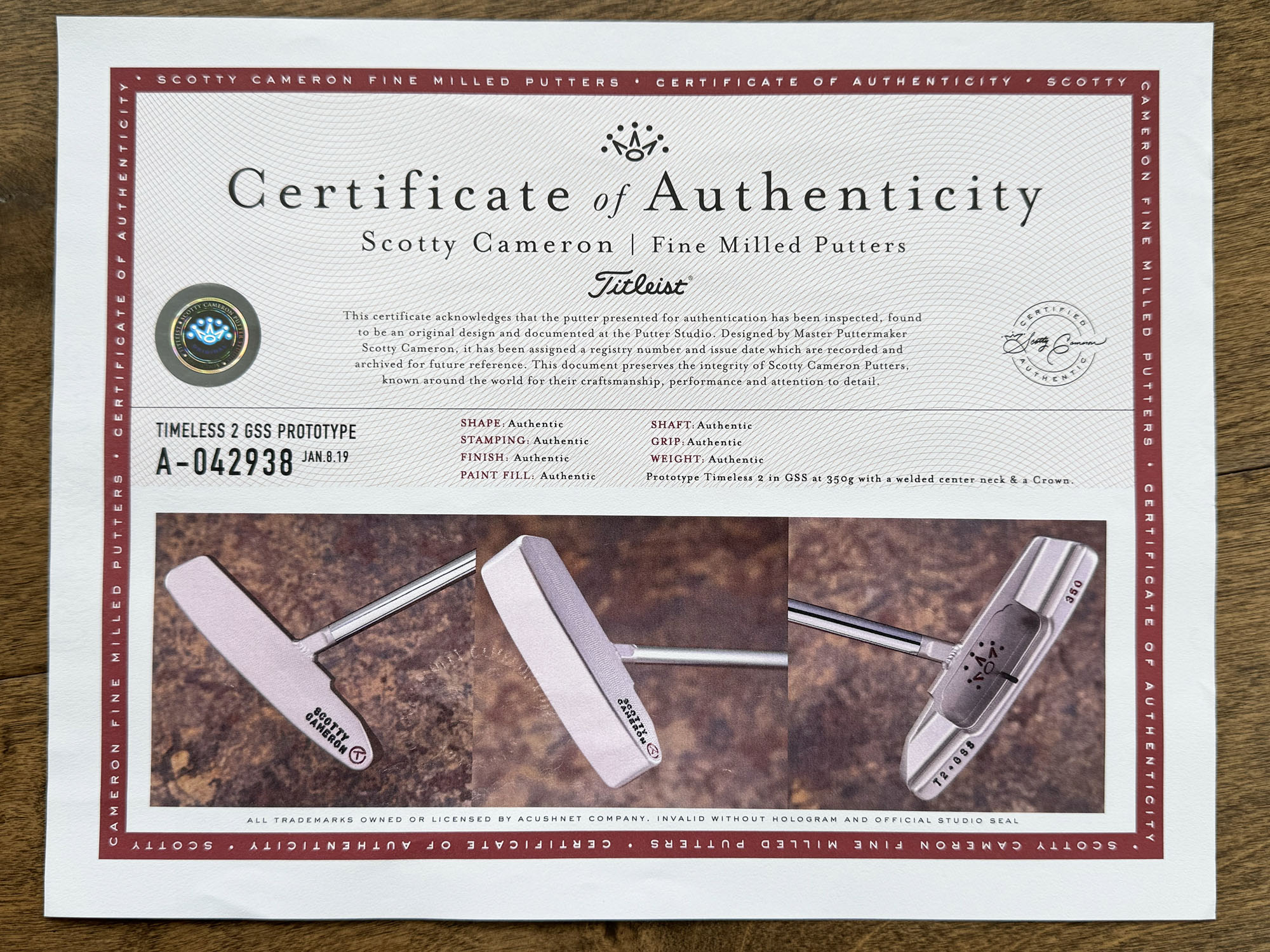 Model: Scotty Cameron Tour Only GSS Timeless T2 Circle T 350G w/ Welded Centershaft “Spud” Neck